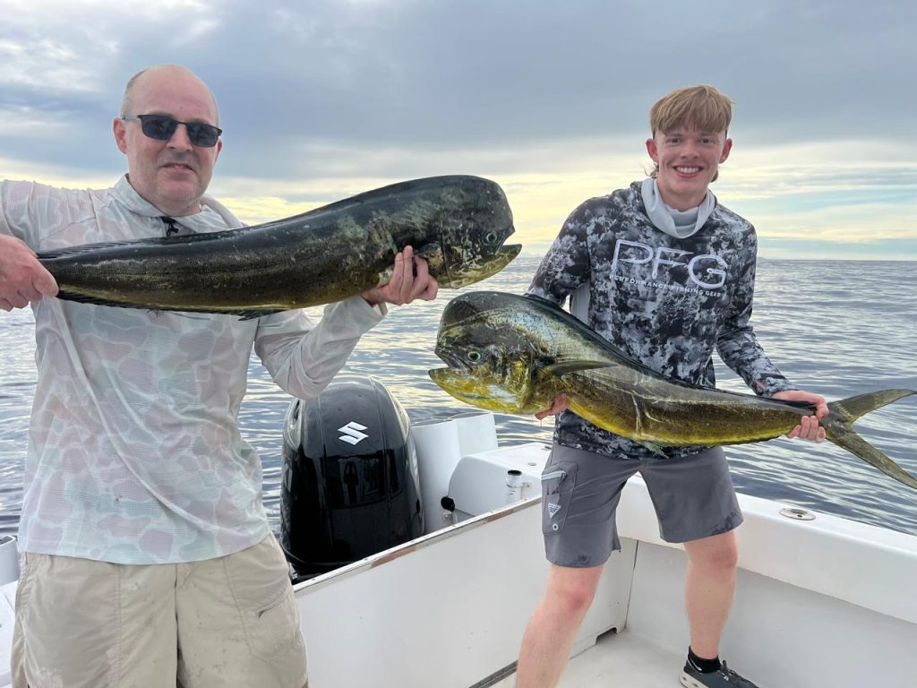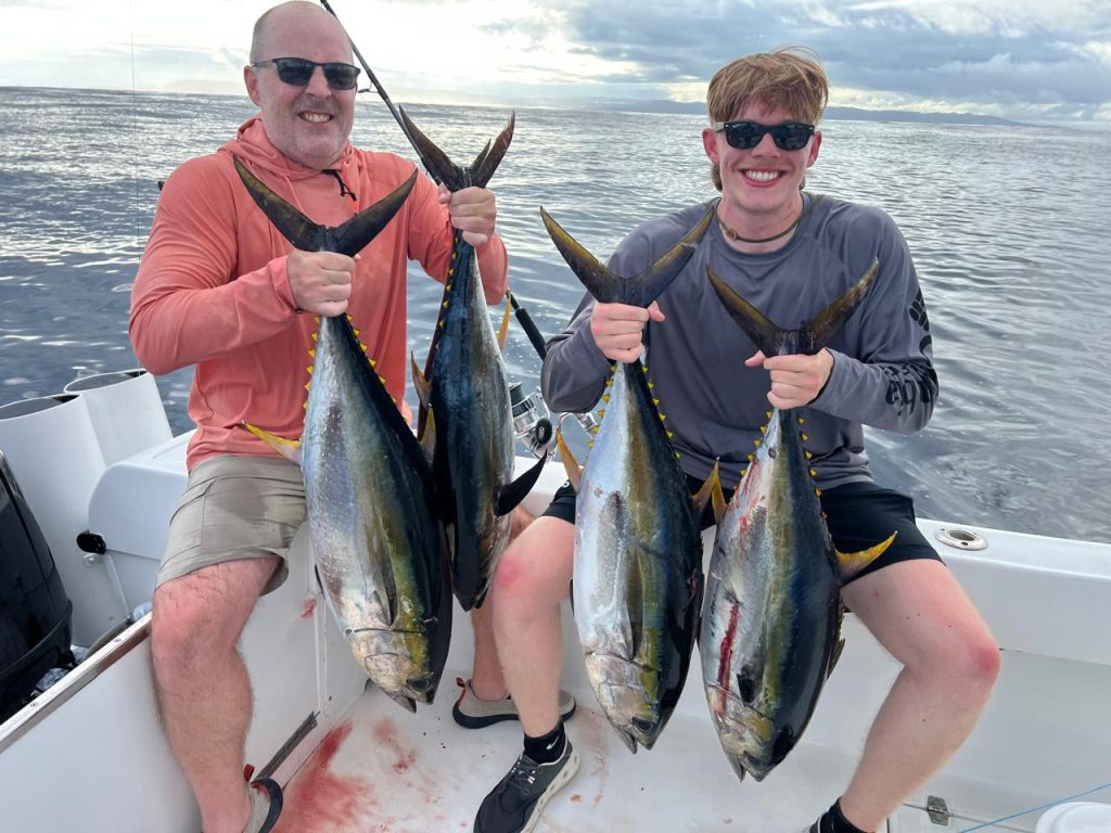 Rooster over 80lbs, 89 10lb-150lb tuna caught from 4 boats in 1 day, true 800lb class black marlin (biggest we’ve seen this year) garfed a 25lb mahi that was being fought on medium spinning gear. The father/son tried for 15 minutes before the marlin barfed the mahi.